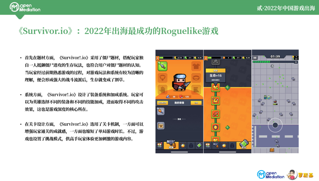 “生存+割草”玩法的Roguelike游戏早在2020年就出现了,但是那时候并没有引起很大的反响,直到2022年7月,《Survivor.io》改变了这一情况,成为2022年出海为数不多的爆款。