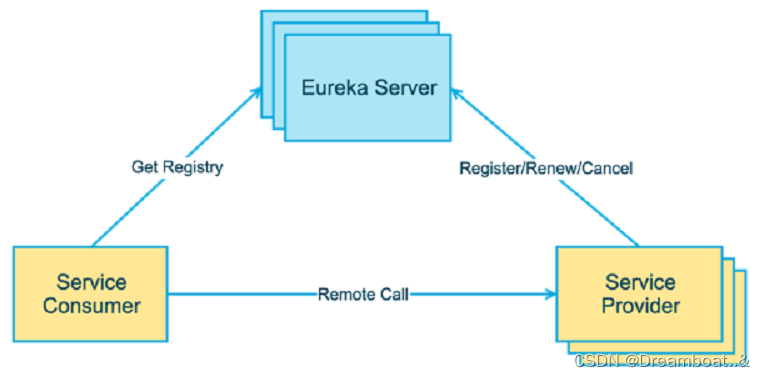 注意:一个微服务,既可以是服务提供者,又可以是服务消费者,因此eureka将服务注册、服务发现等功能统一封装到了eureka-client端