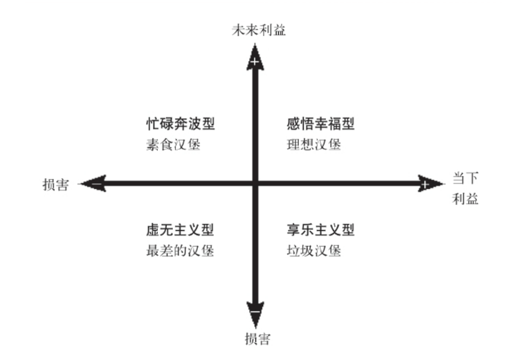 那就是第四种,“感悟幸福型”汉堡。生活幸福的人,不但能够享受当下所做的事情,而且通过目前的行为,他们也可以拥有更加满意的未来。