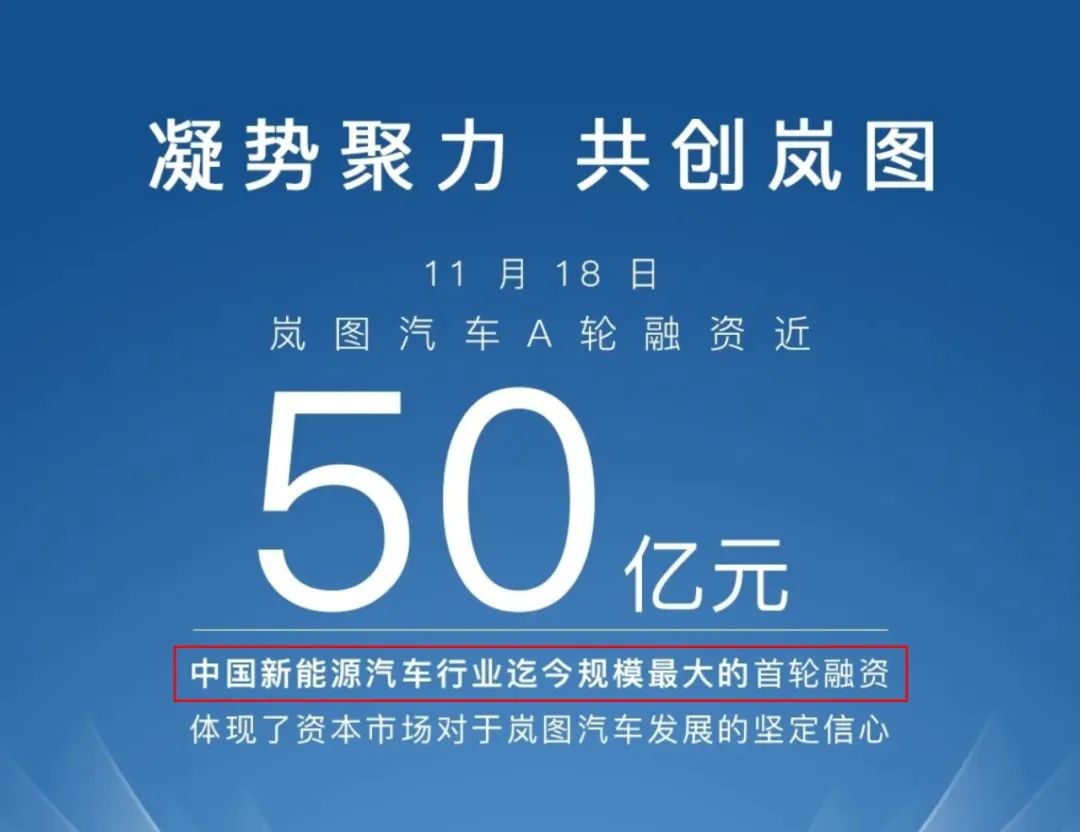 不过,略显尴尬的是,岚图还宣称创下了“中国新能源汽车行业迄今规模最大的首轮融资,体现了资本市场对于岚图汽车发展的坚定信心”,不知比它早一个月获得182.94亿元A轮融资、融后估值为1032.39亿元的广汽埃安看到后,会作何感想?