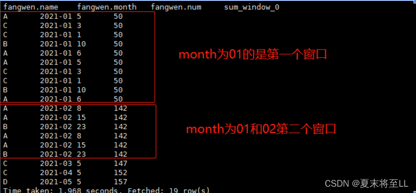 FOLLOWING:往后 CURRENT ROW:当前行 UNBOUNDED:起点(一般结合PRECEDING,FOLLOWING使用) UNBOUNDED PRECEDING 表示该窗口最前面的行(起点) UNBOUNDED FOLLOWING:表示该窗口最后面的行(终点)