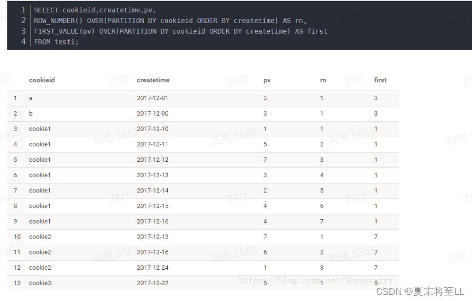 FIRST_VALUE 取分组内排序后,截止到当前行,第一个值