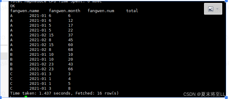 结论:group by和over()配合起来使用的数据生成的流程是,先通过group by进行分组聚合,over函数是作用在group by所生成的数据之上的。