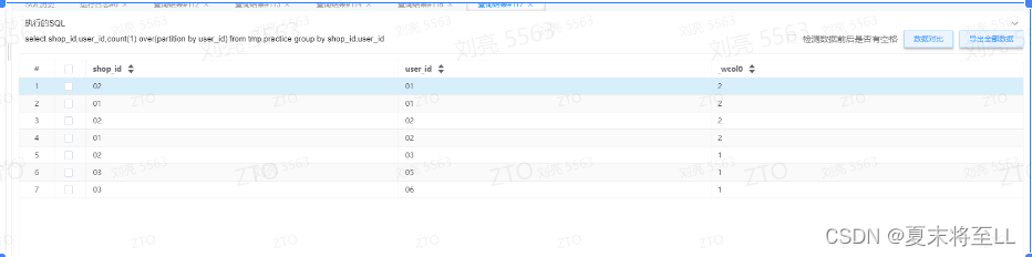 select shop_id,user_id,count(1) over(partition by user_id) from tmp.practice;