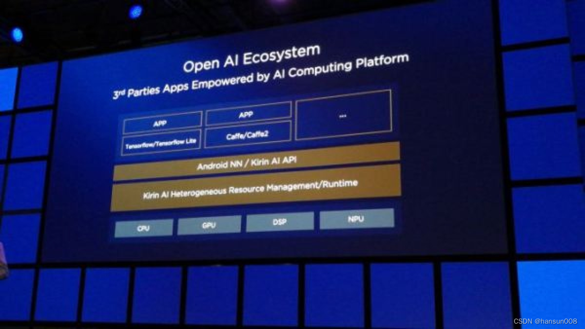 •2017 年 8 月高通对外发布了支持 Caffe/Caffe2 和 TensorFlow 的 Neural Processing Engine SDK,让深度学习可以利用 GPU 和 DSP 的计算能力。实际上,在 2017 年 4 月,Facebook 发布了针对 Edge 端设备的深度学习框架 Caffe2,其主要作者贾扬清在 F8 大会上演讲时就提到:“Android 系统上的 GPU 也类似,我们与高通合作开发了‘骁龙神经处理引擎’(SNPE),如今高通骁龙 SoC 芯片为大量的手机服务,现在是 Caffe2 的首要概念( first class concept),我们可以利用这些 CPU 和 DSP,从本质上提升能效和性能。”