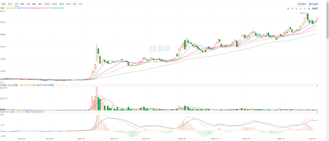 东方甄选的火热也直接拉动了二级市场的预期,新东方在线股价在2021年12月28日港股收盘价为7.21港元/股。但到去年12月28日,其股价攀升到52.65港元/股,一年上涨约630%。