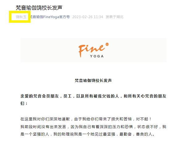 2月26日,有媒体报道,全国知名瑜伽连锁机构梵音瑜伽正卷入一场疑似资金链断裂的关店风波。实控人饶秋昱发出公开信称,欠的钱会以不同方式偿还。但“停业内部整顿”的消息一出,一度被质疑是真的“内部整顿”需要,还是“资金挪用”“投资失败”“套路跑”似的骗局开端。