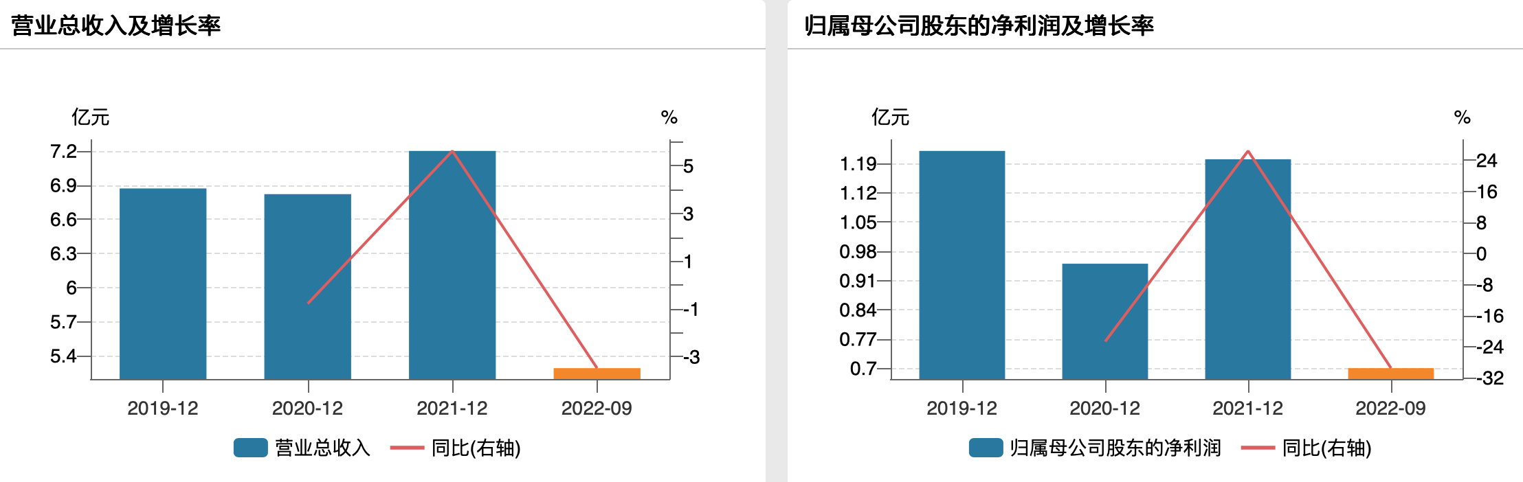 而去年由于疫情原因,前三季度公司经营业绩承压更为明显,实现营业收入5.29亿元,同比下降3.48%;实现净利润7012.93万元,下降幅度接近30%;扣非净利润为6063.87万元,更是同比下降33.59%。