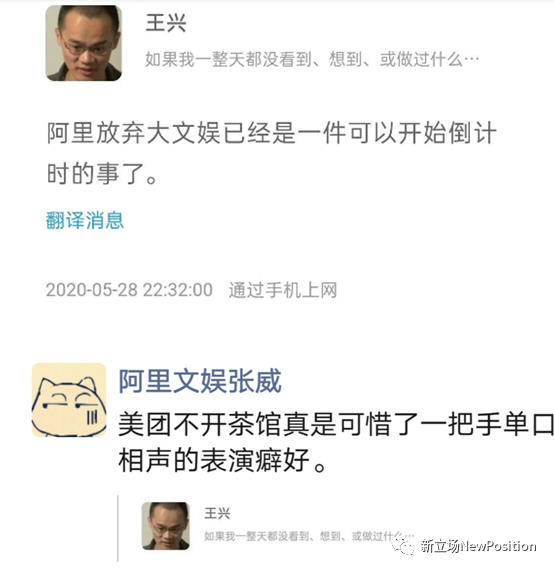 2020年5月28日,王兴曾在饭否上炮轰:“阿里放弃大文娱已经是一件可以开始倒计时的事了。”虽然当时阿里文娱很快以“美团不开茶馆真是可惜了一把手单口相声的表演癖好。”回怼过去。但从近来阿里文娱的表现来看,说不定日后王兴的话真的会一语成谶,虽然马云曾多次强调要给阿里文娱11年的时间,但如果从2013年算起,如今已过9年,对于樊路远和阿里大文娱而言,留给他们的时间或许已经不多了。