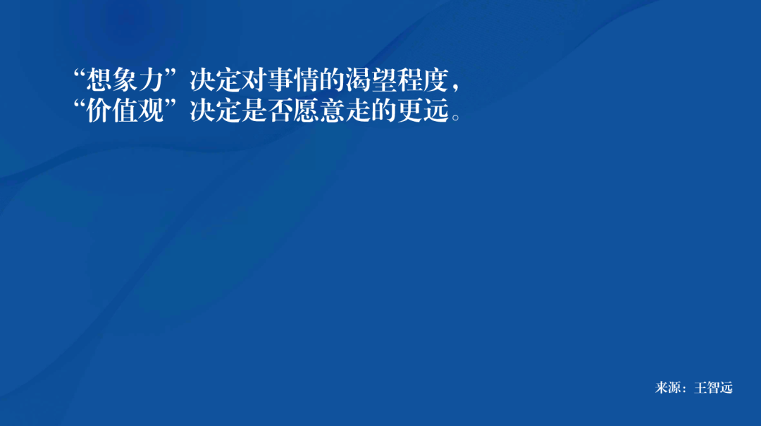 由此,**“想象力”决定对事情的渴望程度,“价值观”决定你是否愿意走的更远**,这也是为什么说,价值观决定命运。