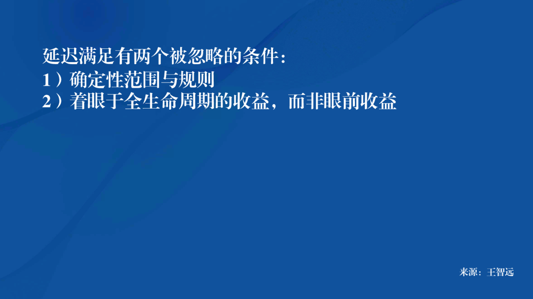 - 延迟满足基于“确定性范围和全生命周期的收益”。