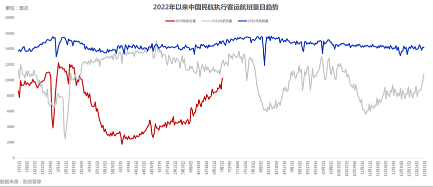与此同时,伴随暑期的到来,各大航司也开始调整航线布局。比如东航针对暑运旅客旅游出行比例高等特点,在内蒙、西北地区开通航线;南航则是在今年暑运季计划执行航班超16万班次;此外,京沪航线也在加速恢复中。7月以来,已有东航、国航、吉祥等多家航司宣布逐步恢复京沪航班。