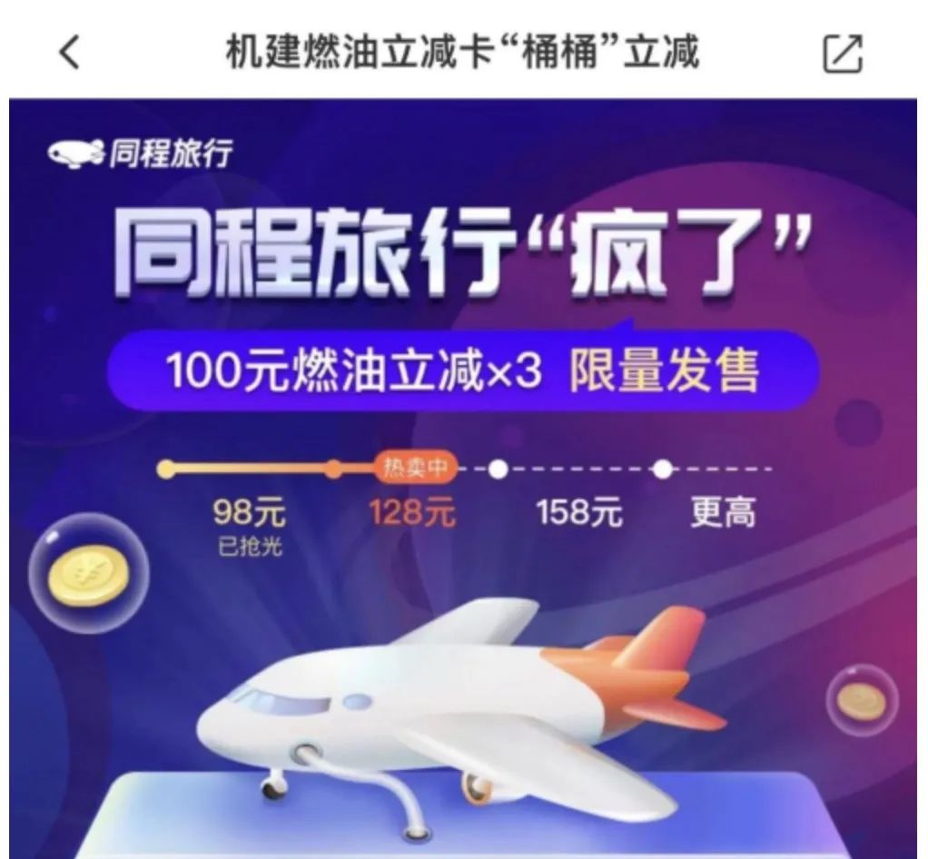 面对机票价格的不断上涨,以及游客的出行需求,OTA在线旅游平台也推出了针对性的燃油费产品。同程旅行推出了燃油费次卡,且根据用户的需求不断进行调整。比如用户通过同程旅行App预订机票时,可以在订单填写页面购买128元的机建燃油次卡,获得3次机建燃油费抵扣权益,每次抵扣金额上限为100元,最高可为用户节省172元的机建燃油费。从数据上来看,这样的产品也受到消费者非常积极的反馈,燃油次卡在APP端的销量自7月1日起相较此轮燃油费涨价消息发布前翻了10倍。